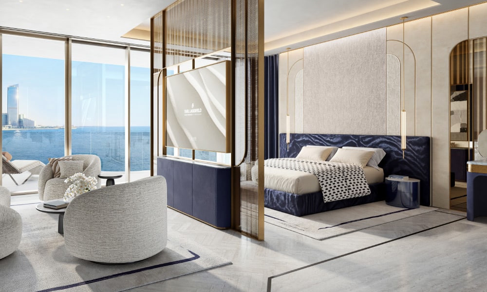 Karl Lagerfeld Residences at Al Marjan Island is an upcoming beachfront development in Ras Al Khaimah, redefining contemporary branded living. A project by Aark Developers, this architectural landmark presents 1, 2, 3 and 4-bedroom apartments alongside exclusive sky villas, designed to reflect timeless artistry and bold sophistication.